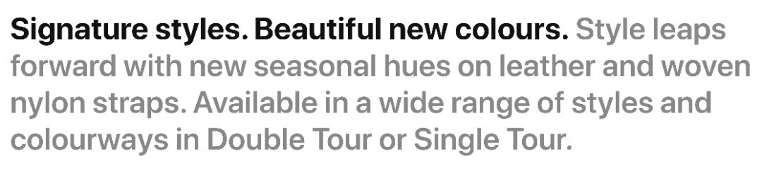 Style leaps forward with new seasonal hues on leather and woven nylon straps. Available in a wide range of styles and colourways in Double Tour or Single Tour.