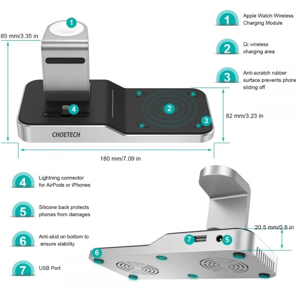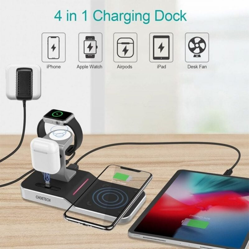 Choetech 4 In 1 Wireless Charging Dock iPhone + Apple Watch, Black (MFI) (T316)