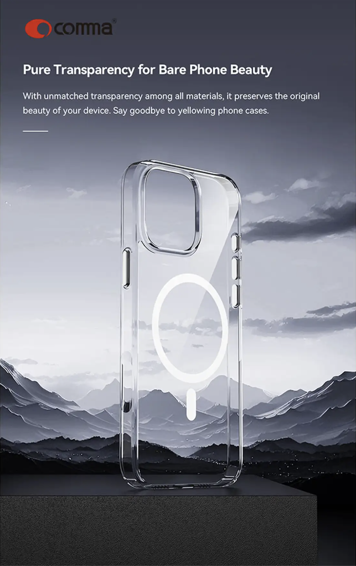 Comma Glass Series Magnetic Case with MagSafe for iPhone 17 Series (2025) - Clear (Jaz Authentic)