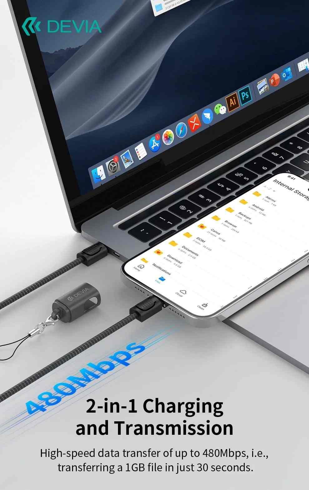 6. 2-in-1 charging and transmission: High-speed data transfer of up to 480Mbps, i.e., transferring a 1GB file in just 30 seconds.
