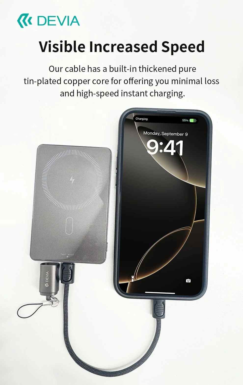 8. Visible increased speed: Our cable has a built-in thickened pure tin-plated copper core for offering you minimal loss and high-speed instant charging.