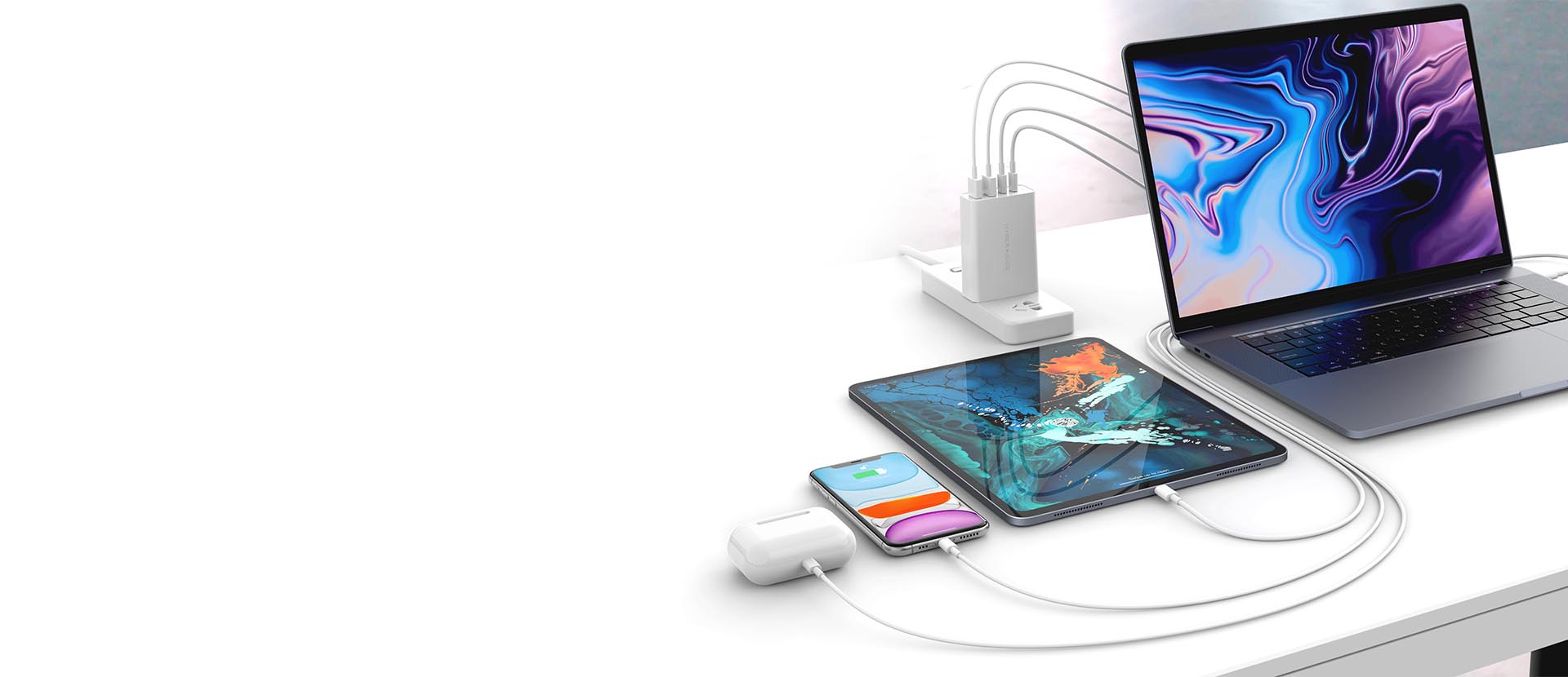 2 x USB-C Power Delivery 3.0 (Max 100W) and 2 x USB-A Quick Charge 3.0 (Max 18W) ports