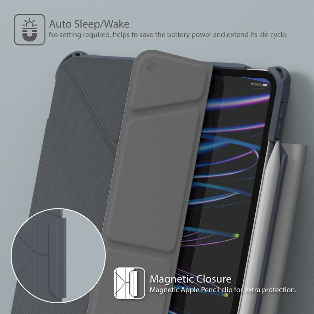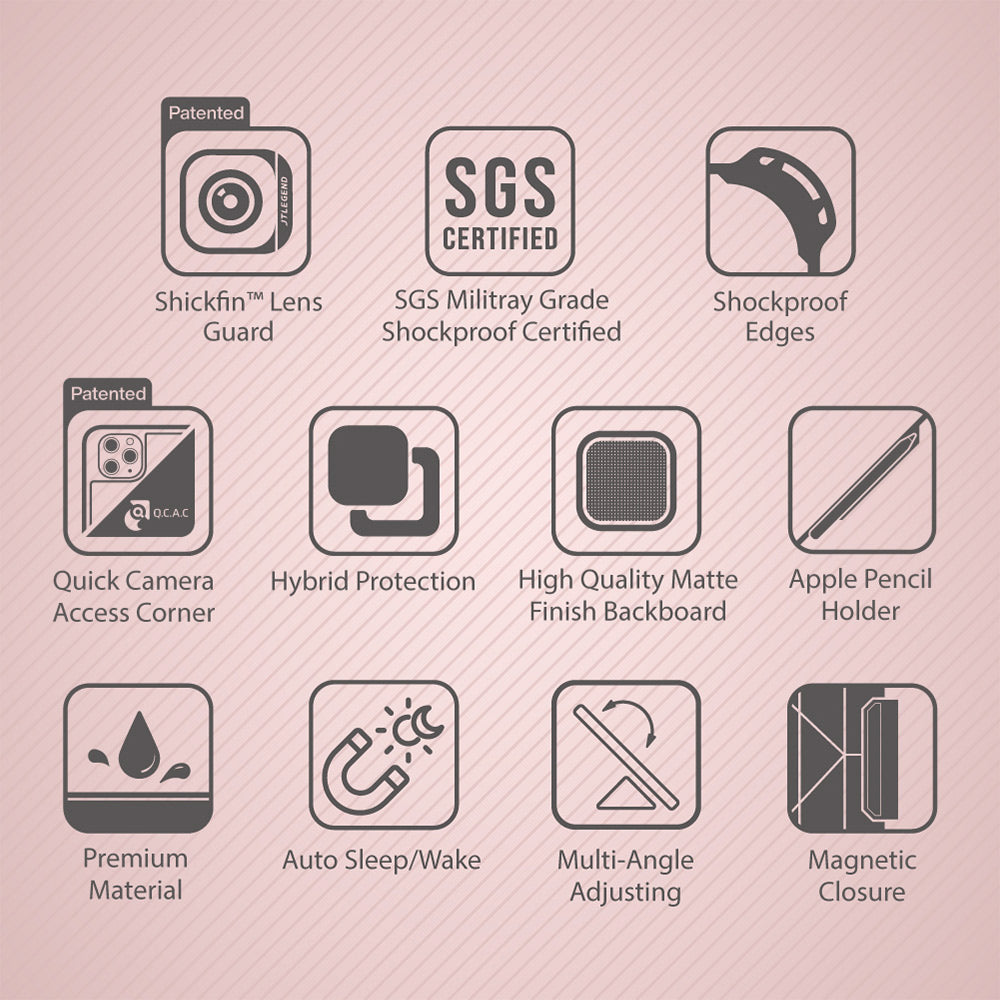 JTLEGEND Mighty Shield QCAC Folio Shockproof Origami Case, with Apple Pencil Holder+Clip