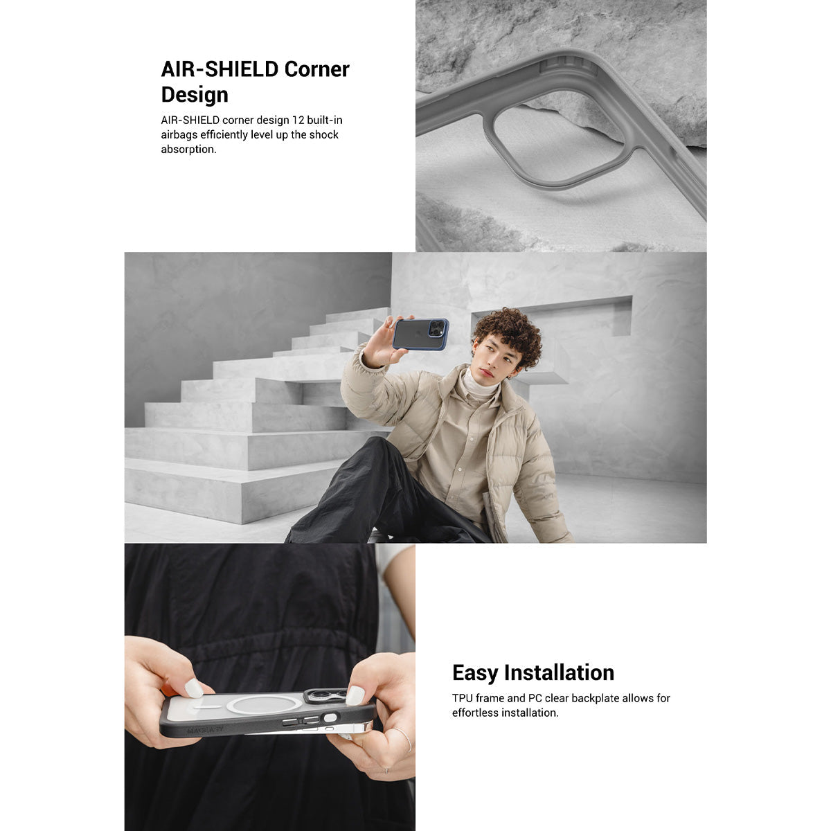 • AIR-SHIELD corner design. Built-in 12 airbags efficiently level up the shock absorption.