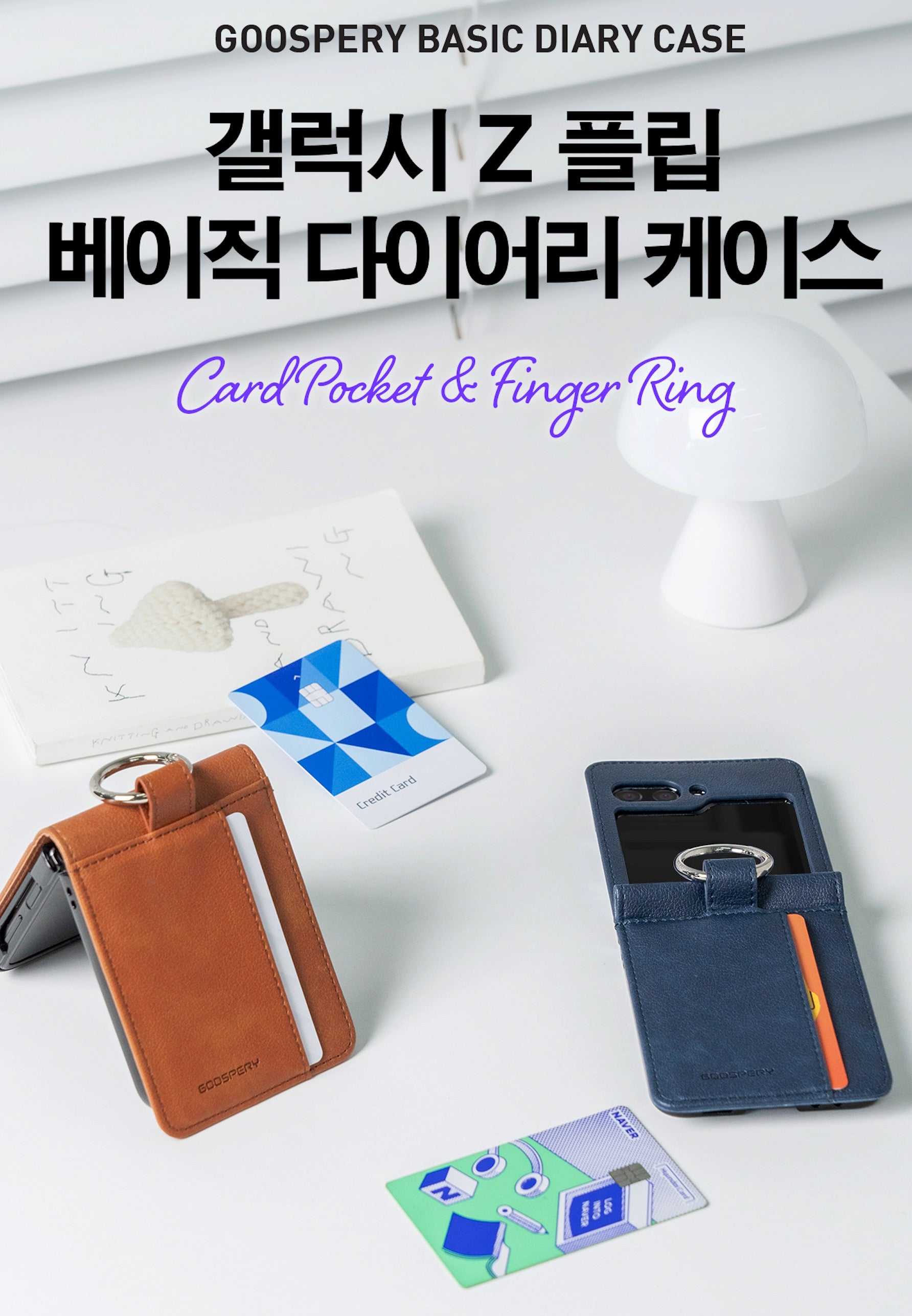 • Galaxy Z Flip Basic Diary Case: Card Pocket & Finger Ring